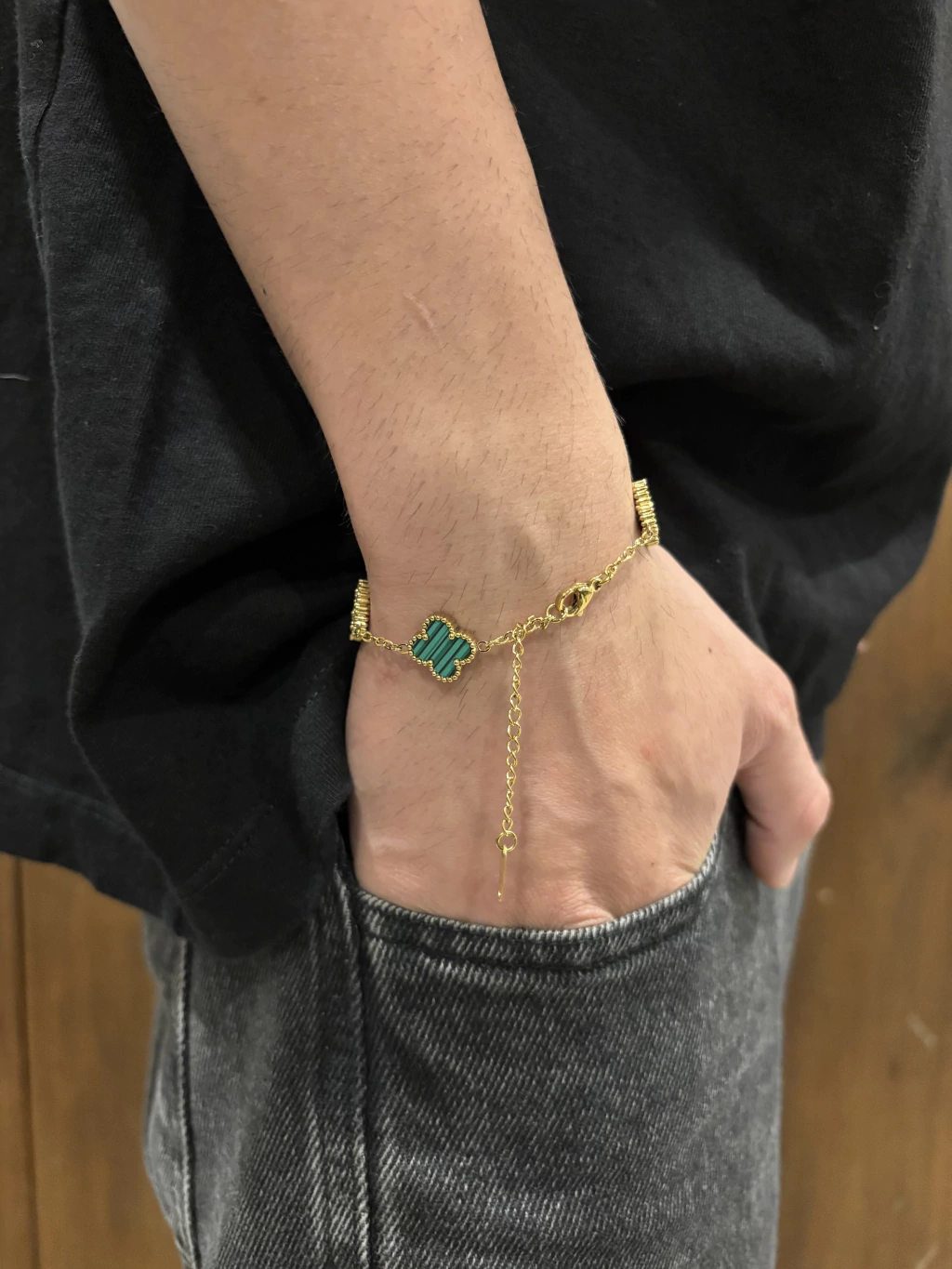 Pulsera tipo Van Cleef Verde con dorado regulable 18 cm a 23 cm, se ajusta a cualquier muñeca.